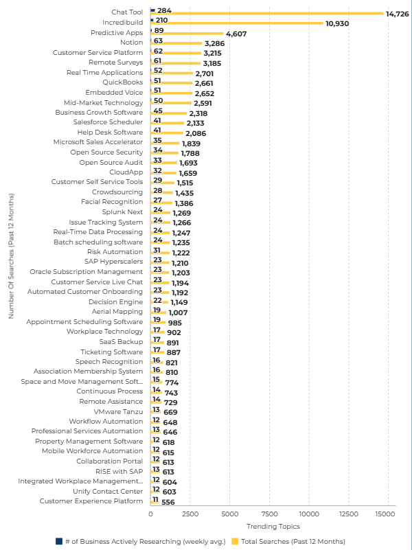Software Acceleration platforms such as Incredibuild (10,930 searches) demonstrate the industry's increasing focus on accelerating data processing and software development cycles, crucial for responsive operational management.